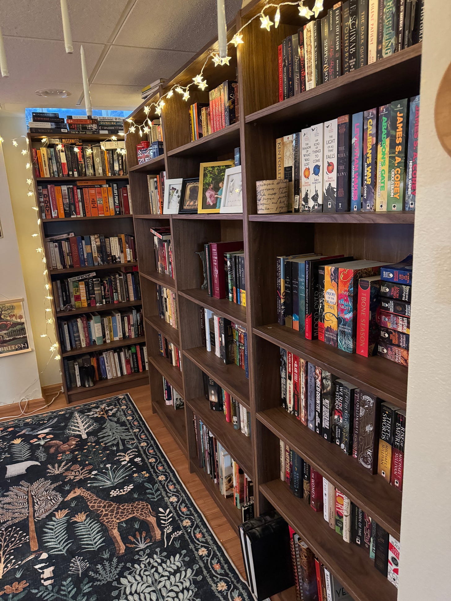 I bought my house in January of 2025, and when I toured the place, I found the one room that I knew would immediately become my sanctum of all things books. We went down into the basement, which has a beautiful main entertaining area with hardwood floors and a gas fireplace, and in a room just off the main area was a bedroom. I stood in the middle of the room and knew the low ceilings and the warmth would make it an enduring library.